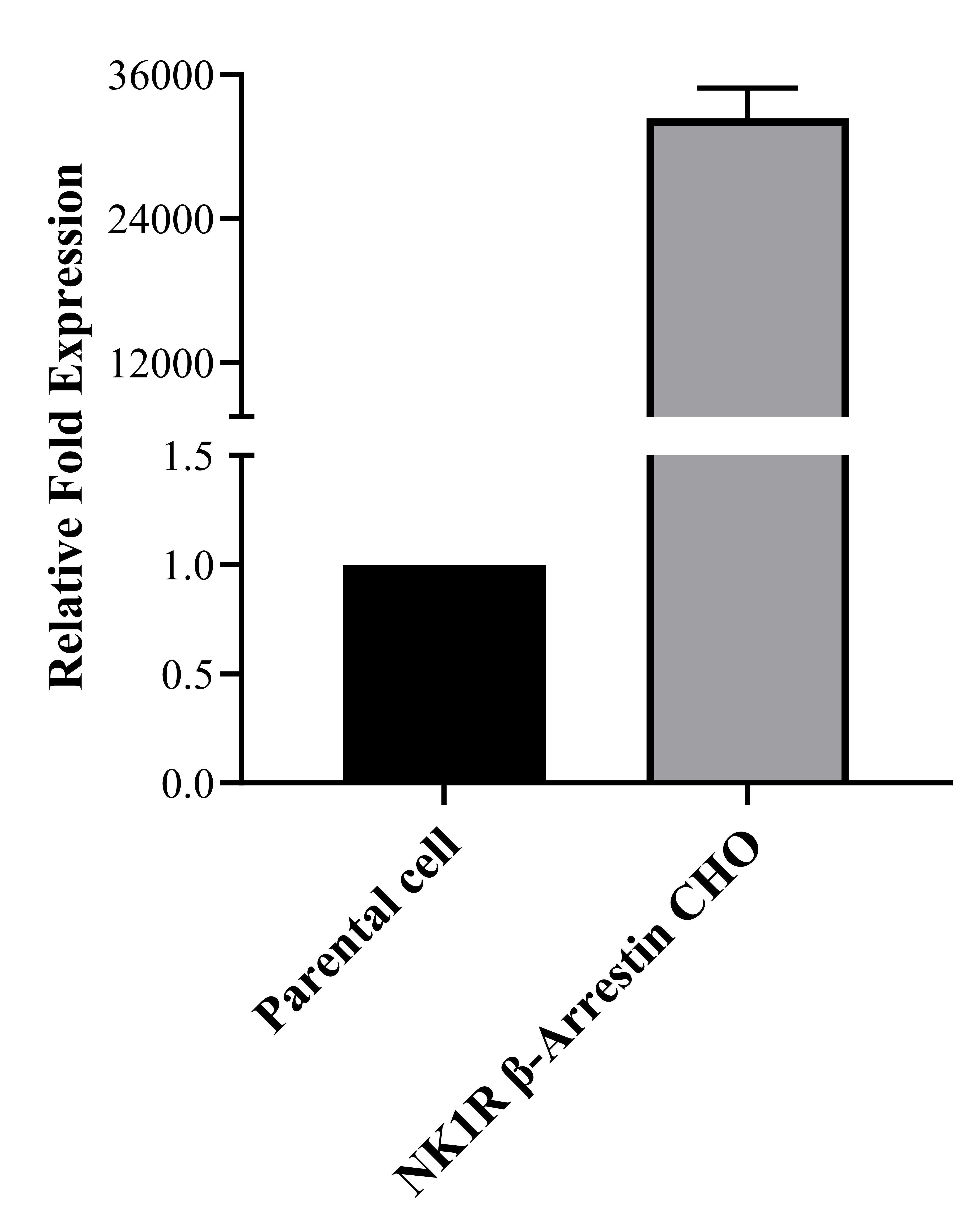 NK1R β-Arrestin CHO 報(bào)告基因藥靶模型很好的模擬了體內(nèi) NK1R/β-Arrestin 的信號(hào)轉(zhuǎn) 導(dǎo)過(guò)程,原理見(jiàn)下圖所示。當(dāng)缺乏配體刺激時(shí),β-Arrestin 不與 NK1R 結(jié)合,融合β-Arrestin的熒光素酶處于失活構(gòu)象,當(dāng) NK1R 遭遇配體刺激時(shí),融合熒光素酶報(bào)告基因的β-Arrestin 被招募,使熒光素酶報(bào)告基因處于激活狀態(tài),加入其底物后發(fā)光信號(hào)增強(qiáng)。![]() Figure 1. NK1R β-Arrestin CHO 細(xì)胞模型原理圖 |