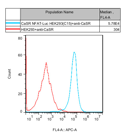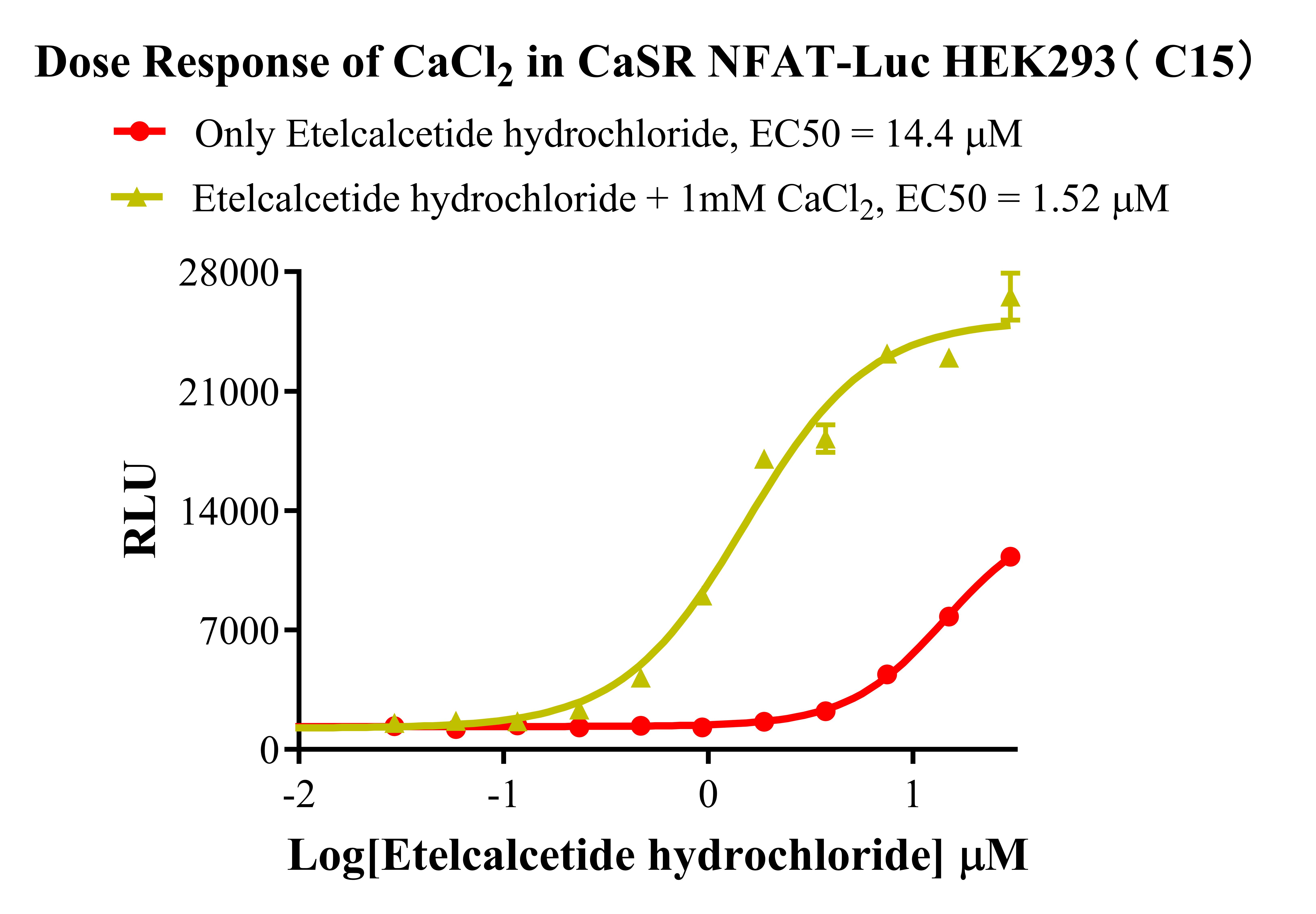 CaSR NFAT-Luc HEK293 細(xì)胞藥靶模型很好的模擬了體內(nèi) CaSR 的信號轉(zhuǎn)導(dǎo)過程,原 理見下圖所示。![]() Figure 1. CaSR NFAT-Luc HEK293 細(xì)胞模型原理圖 |