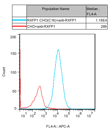 V. Representative Data![]() Figure 2. Recombinant RXFP1 CHO stably expressing RXFP1. ![]() Figure 3. HTRF CAMP Assay with RXFP1 CHO( C16). |