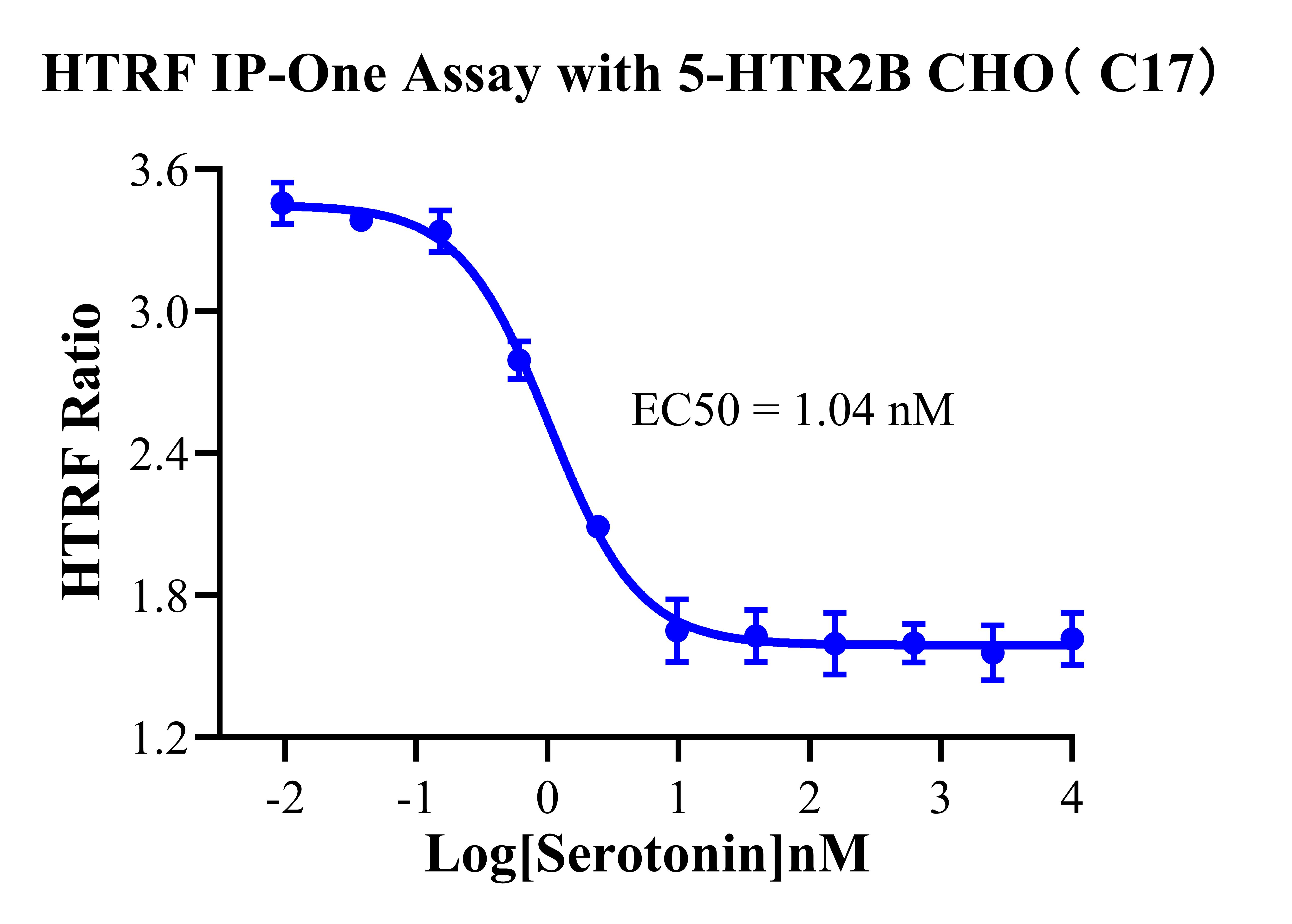 V. Representative Data![]() Figure 2. Recombinant 5-HTR2B CHO stably expressing 5-HTR2B. ![]() Figure 3. HTRF IP-One Assay with 5-HTR2B CHO( C17). |
